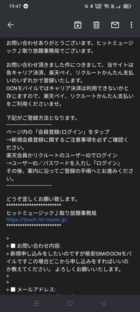 はい。ここで返信きました〜。 格安SIMの携帯で契約している方は楽天ペイまたは リクルートかんたん決済ですって。