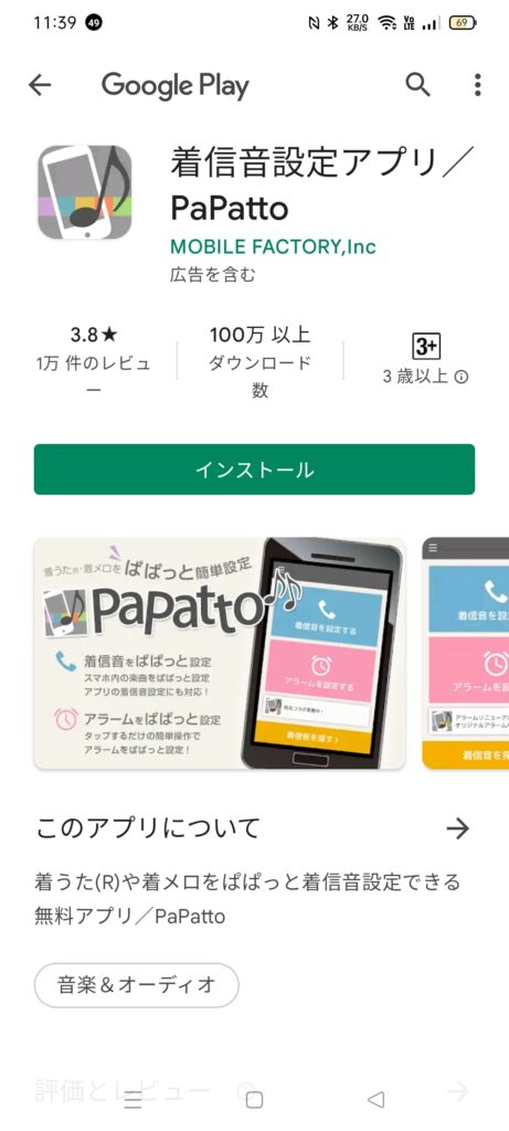 - Papatto♪ と言うアプリをGoogle playからダウンロード。