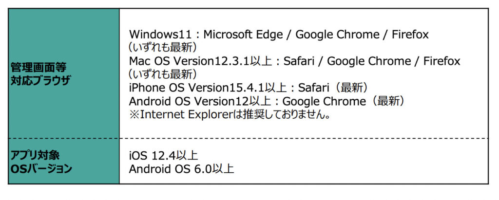 ダウンロードできるブラウザやOSバージョンはこちら