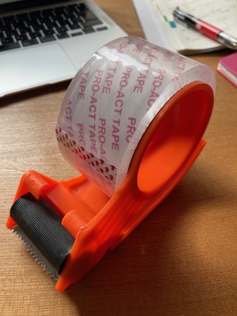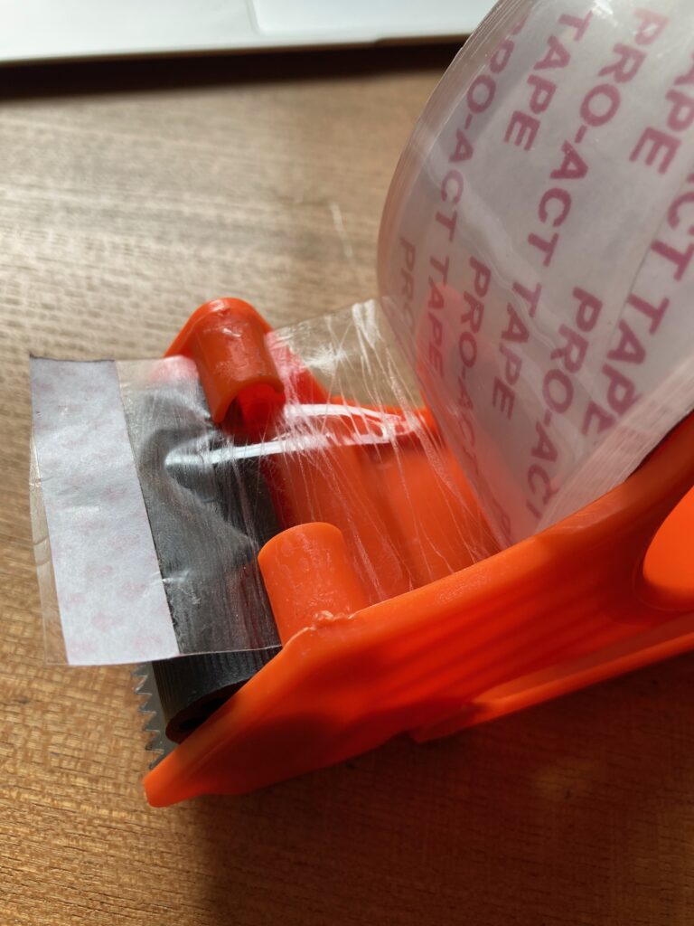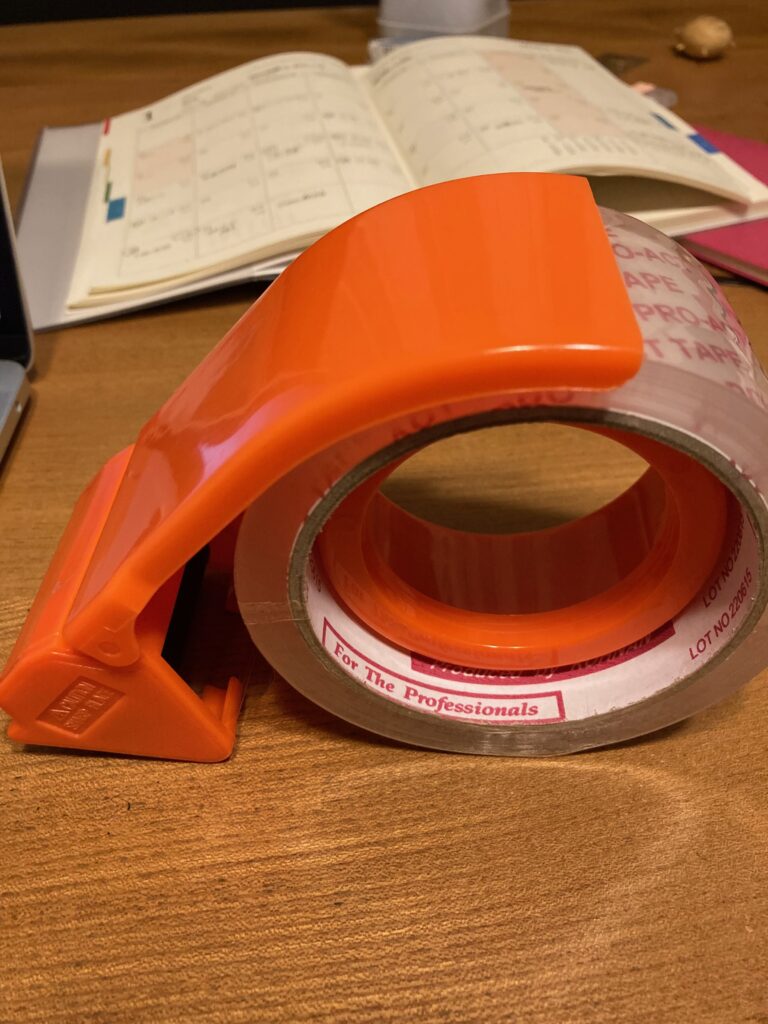 OPPテープと言うのはテープカッターからテープ引っ張るときに結構大きな音がする透明のテープのことです。さてこのOPPテープカッターいちど百均で買ったのですけれども、どうやってこのオレンジのテープカッターに設置するか分からなくなってませんか?