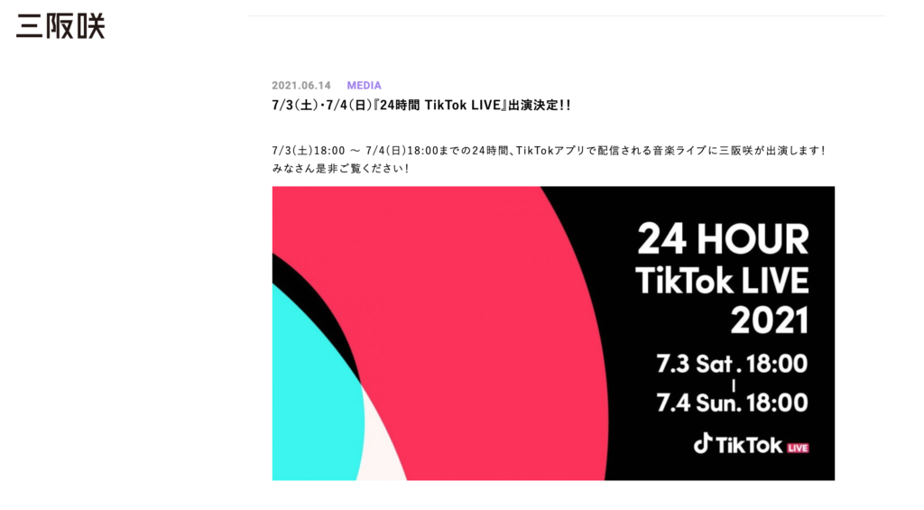 歌への興味関心も強くあり、11歳(小5)の時、通っていたダンススクールで開催されていたボーカルコンテストに出場。それを機に歌手を目指すことを決意。以降、路上ライブやライブハウスなどでも積極的に音楽活動を行い、それらの様子がYouTubeやSNSなどを通じて徐々に拡がり、TikTokでは「三阪咲」関連の動画再生数が約5億回と爆発的に視聴されており、YouTubeにアップされている歌唱動画も関連動画再生数は合計約6000万再生を超える。