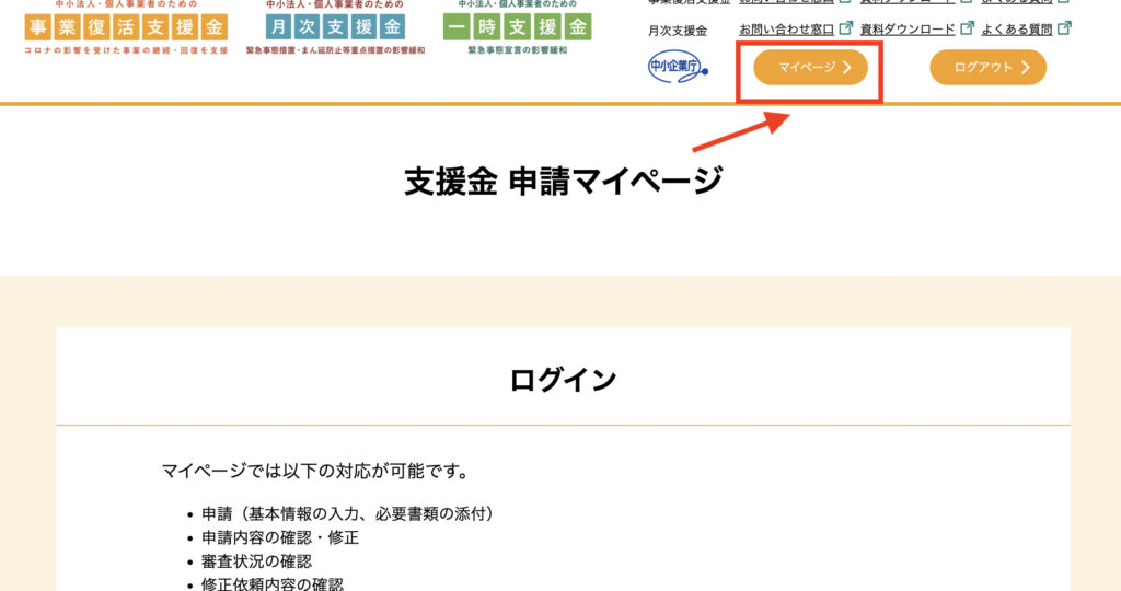 - 事業復活支援金は、まずはマイページから(途中から前回の書き足しも)