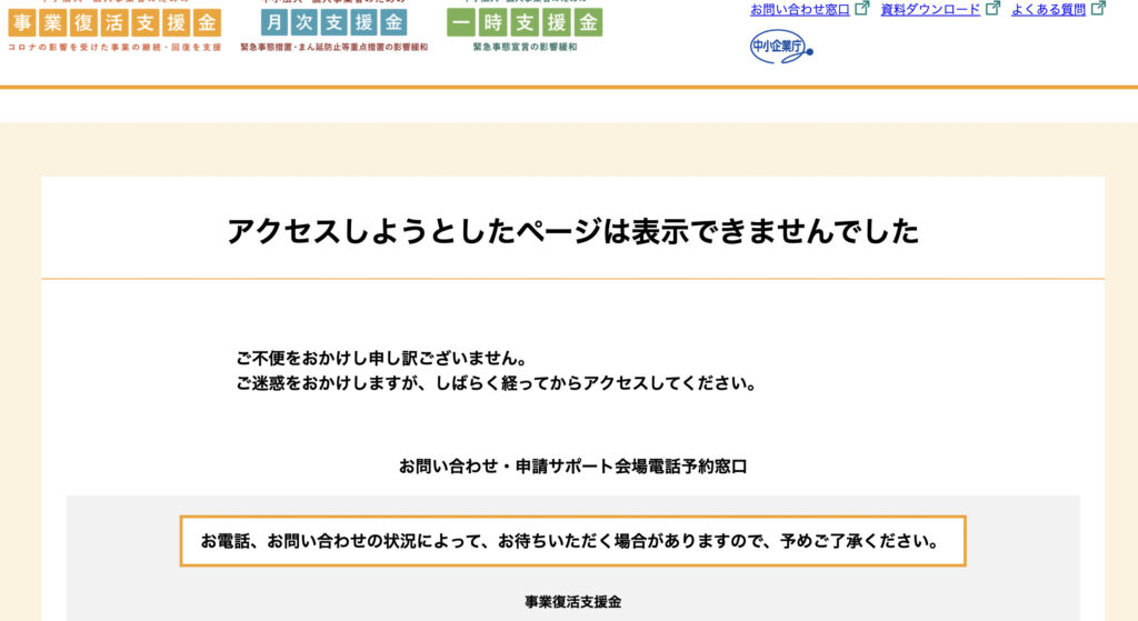 - 事業復活支援金は、 アクセスしようとしたページを開けませんと出た場合の対処法