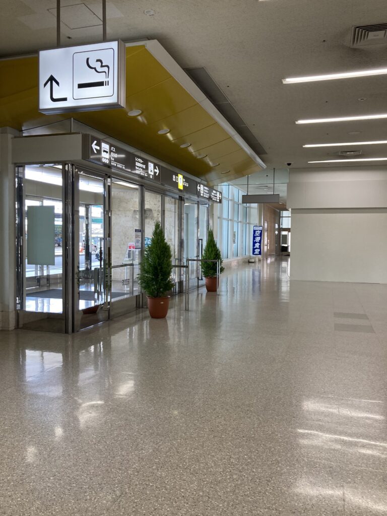 出口を出たら空港の建物内の